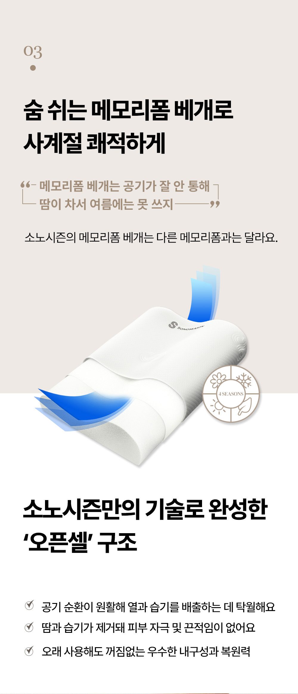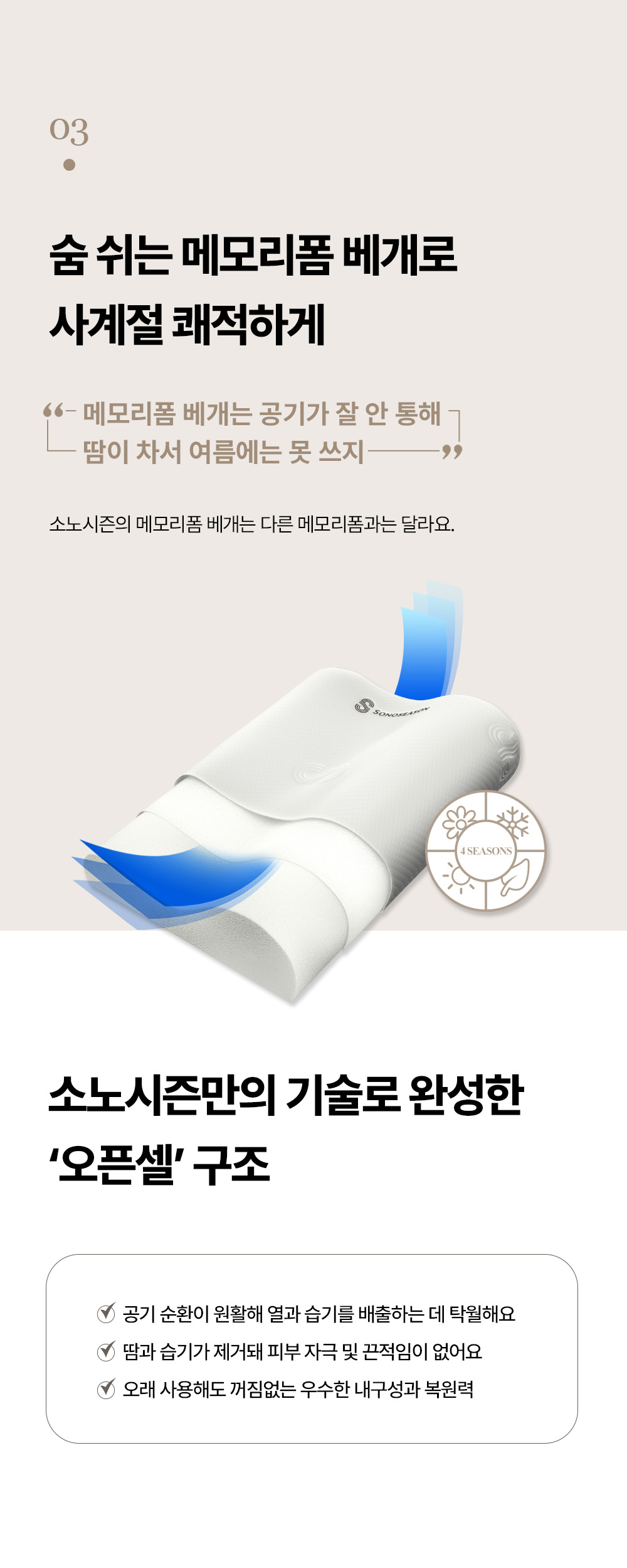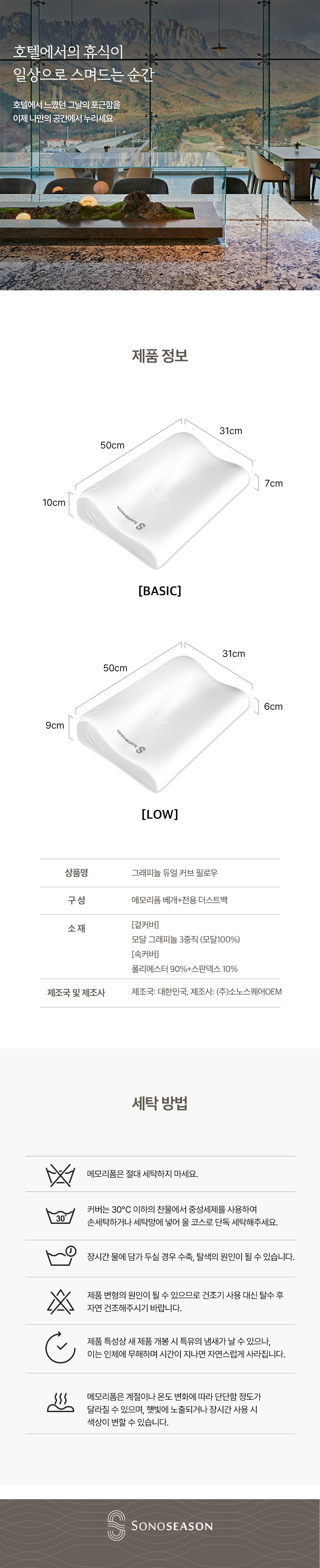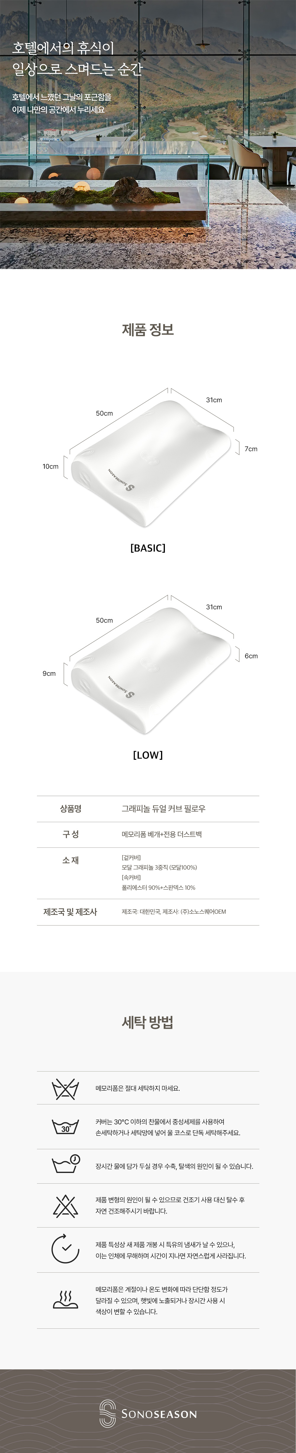 고밀도 점탄성 메모리폼으로 경추 체형에 맞춘 C자 커브 양방향 설계로 숙면을 돕는 사계절 베개
